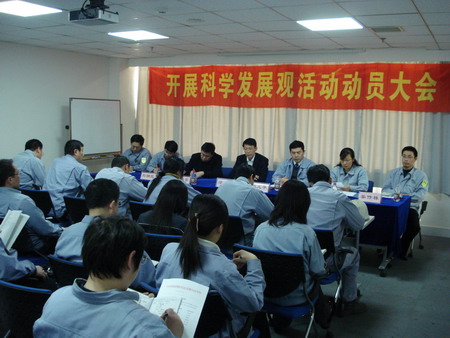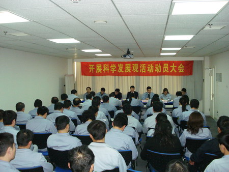 動員大會由總經(jīng)理孫龍平同志主持。會上,首先宣讀了《關(guān)于成立公司學(xué)習(xí)實踐科學(xué)發(fā)展觀領(lǐng)導(dǎo)小組的通知》,荏原博泵黨總支副書記姜作棟同志宣讀了公司《深入學(xué)習(xí)實踐科學(xué)發(fā)展觀活動的實施方案》,明確了各階段的任務(wù)要求和具體責(zé)任人,并公布了公司信箱、意見箱,鼓勵廣大黨員、群眾對公司開展好學(xué)習(xí)實踐科學(xué)發(fā)展觀活動獻(xiàn)計獻(xiàn)策。